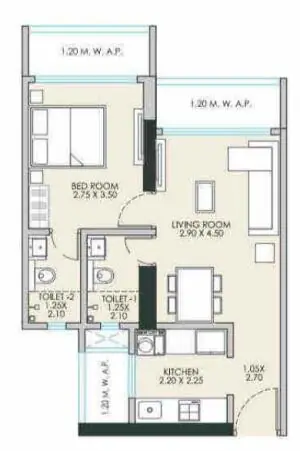 Vinay Nagar, Mira Road East,Mira Bhayandar,indiaThe floor plan additionally contains 1 bedroom(s), 2 bathrooms and 3 balconies....
