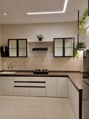 The spacious living and dining area creates a welcoming atmosphere, perfect for hosting gatherings or enjoying quiet family moments. High-Quality finishes, refined interiors, and thoughtfully chosen materials elevate the aesthetic appeal, giving the home a modern yet timeless charm. The kitchen is designed for both everyday efficiency and culinary creativity, with ample storage, smart layout, and premium fittings.