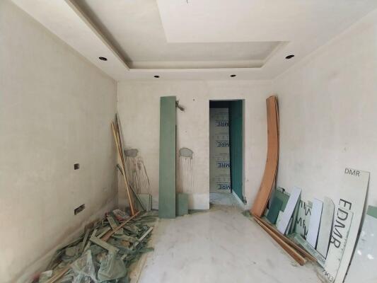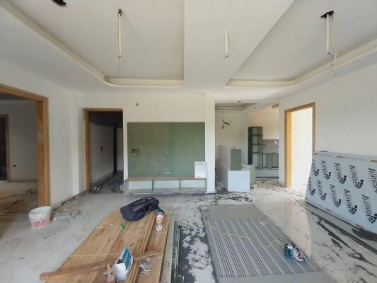 This advertisement belongs to a new floor with a modular kitchen, false ceiling, branded sanitary fittings, and wardrobes.
