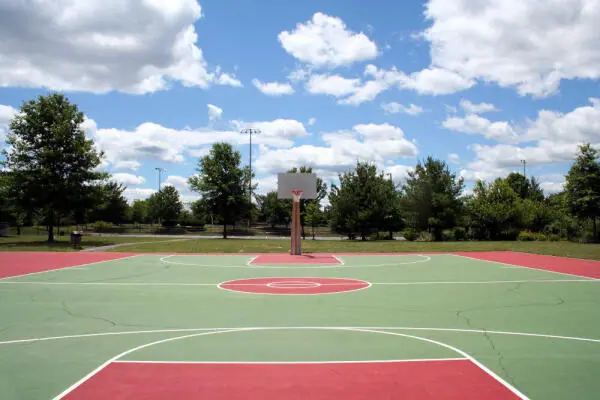 Childrens play area: Modern, safe play equipment designed for childrens enjoyment.