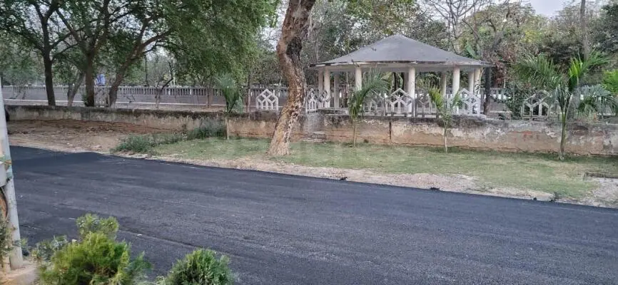 At 18m wide road, north east, with minimum required structure built up and with completion certificate.